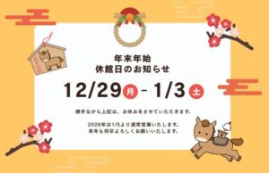 12/29~1/3:年末年始休暇のお知らせ2025.12.06